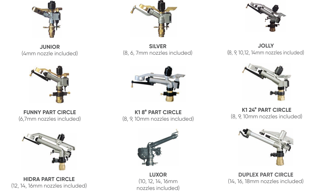 Sime small and medium capacity sprinklers are full or part circle operation and are equipped with an adjustable jet breaker which